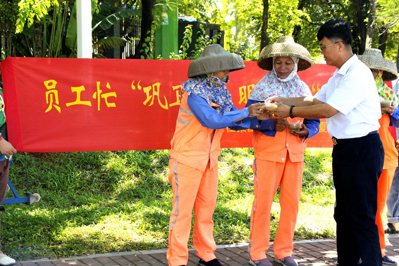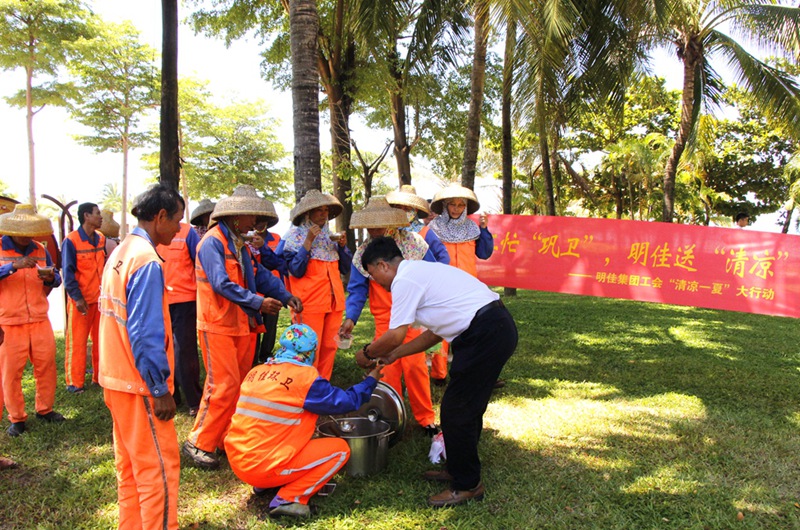 7月3日,集團(tuán)公司主席工會主席高斐斐率慰問組一行,到鳳凰路一中路段、海虹廣場等地為正在高溫下作業(yè)的員工送去降溫解暑的綠豆湯,送上公司以及工會組織的關(guān)懷和問候。
