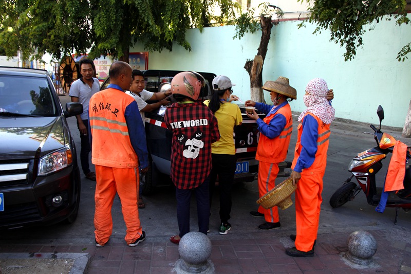 在鳳凰路一中路段、海虹廣場等地,正在清掃保潔作業(yè)的員工們頂著烈日,堅(jiān)守一線,為城市的干凈整潔不停歇地忙碌著。工會主席高斐斐表示,在這么炎熱的天氣下,員工們依舊堅(jiān)守在城市的大街小巷揮灑著汗水,十分辛苦。她叮囑員工們在保證工作質(zhì)量的同時,要科學(xué)調(diào)整作息時間,合理安排勞動生產(chǎn),確保在高溫天氣下作業(yè)安全。勉勵大家繼續(xù)發(fā)揚(yáng)明佳精神,為創(chuàng)造更加整潔、舒適、優(yōu)美的城市人居環(huán)境和“創(chuàng)文鞏衛(wèi)”工作作出更大貢獻(xiàn)。